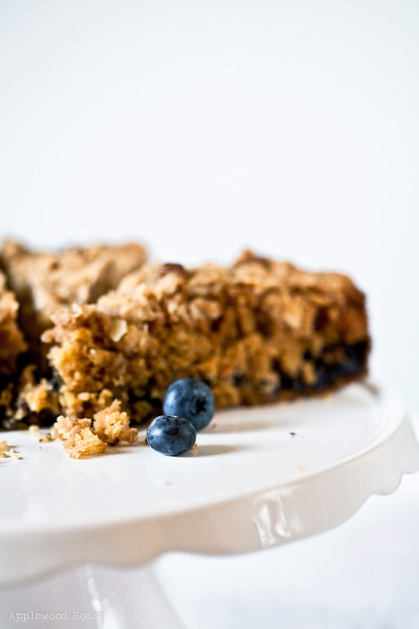 Dieser Coffee Cake kommt noch hübsch spätsommerlich daher, es durfte zwar schon ein bißchen Zimt dabei sein, aber als Zugeständnis an den sich verabschiedenden Sommer auch noch ein wenig Zitrone und vor allem die wahrscheinlich letzten frischen Blaubeeren der Saison.