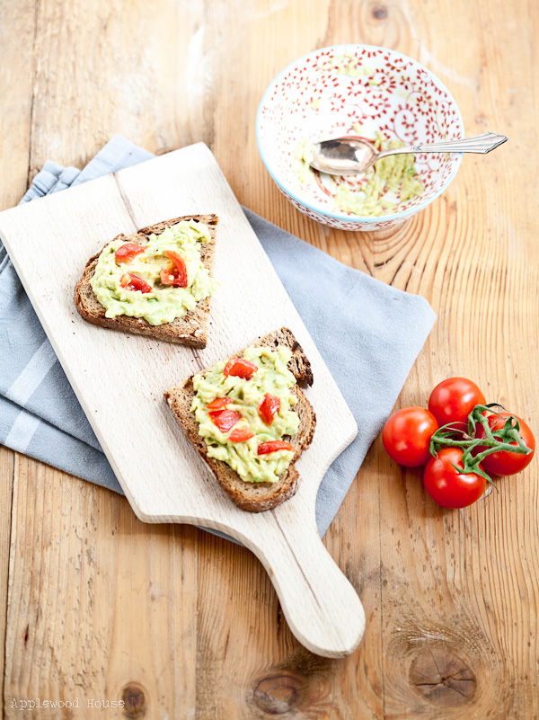 Heute gibt es eine Lieblingsstulle. Dafür wird einfach eine Scheibe Bauernbrot in einer Grillpfanne angeröstet (geht sonst auch im Toaster). Je Brotscheibe eine halbe reife Avocado mit 1TL Schmand und einem Spritzer Zitronensaft zerdrücken und mit etwas Salz und Pfeffer abschmecken. Das geröstete Bauernbrot mit Avocado bestreichen und nach Belieben noch ein paar frische Tomatenwürfel darüberstreuen. Fertig ist die Lieblingsstulle für Guacamole-Lover!