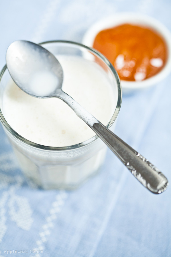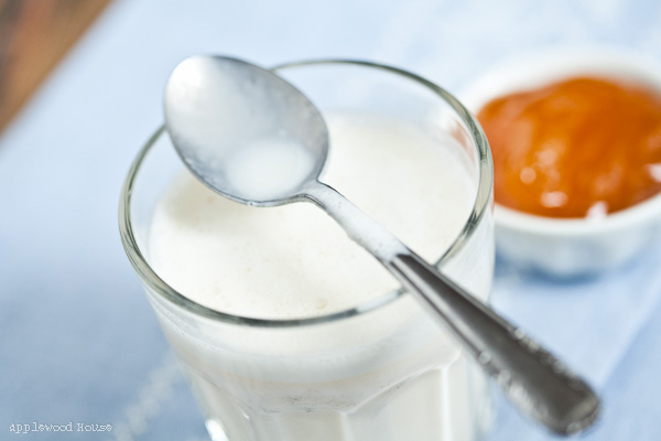 Und um die Folgen meines exzessiven pre-Christmas Zuckerkonsums ein wenig abzumildern, mache ich mir dazu einen feinen Smoothie aus Joghurt und Vollmilch. Natürlich auch in einer winterlich-weihnachtlichen Geschmacksrichtung. Dazu nehme ich den wunderbar fruchtigen und cremigen Joghurt nach griechischer Art von Elinas in der Geschmacksrichtung Aprikose-Mohn. Der ist so sahnig, da braucht man für einen Smoothie gar kein Eis oder Sahne!